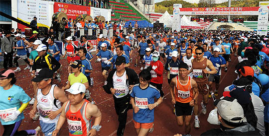 올해 첫 풀코스 공인을 받은 이번 대회에는 은퇴를 선언한 '국민 마라토너' 이봉주 선수와 '맨발의 기봉이'의 실제 주인공인 엄기봉씨, 중국과 일본의 마라톤 동호회 선수단, 미공군 장병 등도 참석했다.