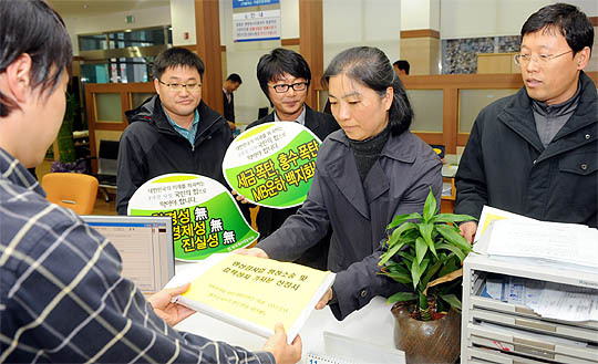 전주환경운동연합과 전북녹색연합 등 4대강 사업 위헌·위법 심판을 위한 국민소송단(이하 국민소송단)은 26일 익산지방국토관리청장과 국토해양부장관을 피고로 하는 '영산강사업 행정소송 및 효력정지 가처분 신청서'를 전주지방법원에 제출했다.