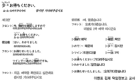 [회화 삼국지] 관광 일본어 - 잠시만 기다려주십시오