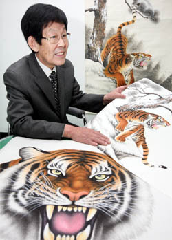 '호랑이 화가'로 알려진 동양화가 정광영씨(65)가 경인년(庚寅年)을 맞아 호랑이 한 마리를 내놓았다. 늠름한 자태와 형형한 눈빛. 마치 금방이라도 달려들 것만 같은 호랑이를 그린 지 벌써 40여 년 째다.