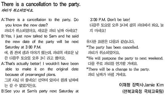 [회화 삼국지] 굿모닝 생활영어 - 파티가 취소되었어요.