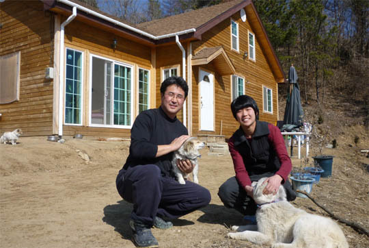 지난해 2월 그는 과수원 안에 목조주택을 지었다. "대충 지었다"고 그는 말하지만 산속에 어울리는, 나무로 지은 멋진 집이다.