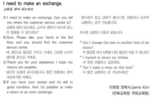 [회화 삼국지] 굿모닝 생활영어 - 교환을 해야 하는데요.