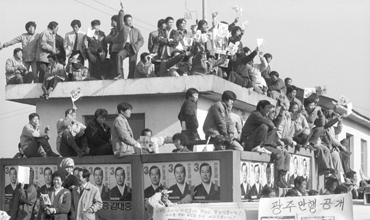 이 사진은 1987년 12월에 있은 대통령선거 전주 유세 모습이다.
