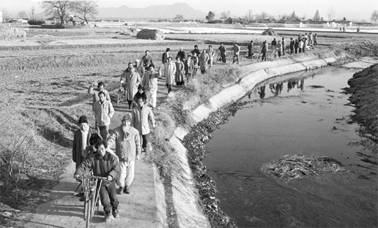 제13대 대통령 선거가 열린 1987년 12월. 강추위 속에서도 국민들은 이른 새벽부터 줄을 지어 투표장으로 향했다. 16년 만에 내 손으로 대통령을 뽑는 첫 직선제가 얼마나 감격스러웠으랴. 전국에 1만3657개의 투표소가 차려졌으며, 완주군 삼례읍 와리 주민들도 사진에서처럼 제4투표소를 향해 일찍 집을 나섰다.