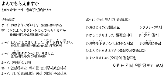 [회화 삼국지] 관광 일본어 - 불러주시겠습니까