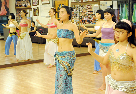 11일 전주시 서신동 소재 밸리댄스코리아에서 강사의 설명에 따라 밸리동작을 연습하고 있다. 이강민(lgm19740@jjan.kr)
