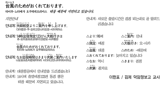 [회화 삼국지] 관광 일본어 - 태풍 때문에 지연되고 있습니다