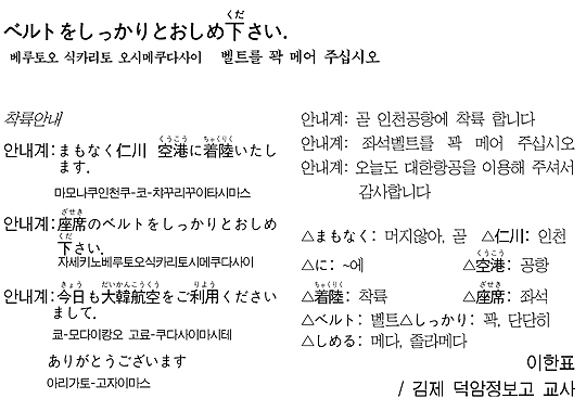 [회화 삼국지] 관광 일본어 - 벨트를 꽉 메어 주십시오