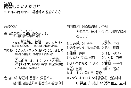 [회화 삼국지] 관광 일본어 - 환전하고 싶습니다만