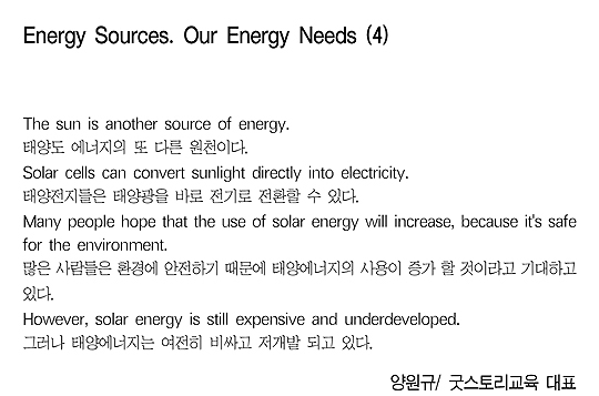 [회화 삼국지] 굿모닝 생활영어 - Energy Sources, Our Energy Needs(4)