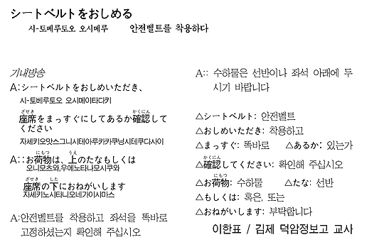 [회화 삼국지] 관광 일본어 - 안전벨트를 착용하다