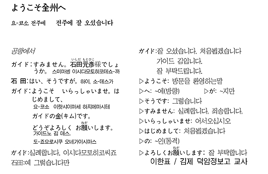 [회화 삼국지] 관광 일본어 - 전주에 잘 오셨습니다