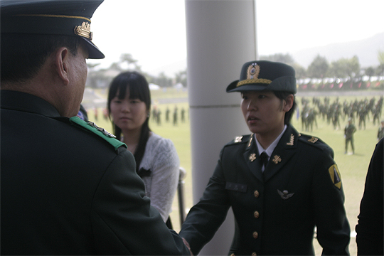 3일 육군부사관학교 종합연병장에서 '제11회 육탄 10용사賞' 시상식을 열었다. 이날 여군 최초 수상자인 수도방위사령부 김원희 중사가 상장을 받고 있다. (desk@jjan.kr)