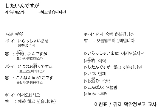 [회화 삼국지] 관광 일본어 - ~하고싶습니다만