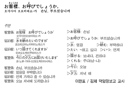 [회화 삼국지] 관광 일본어 - 손님, 부르셨습니까