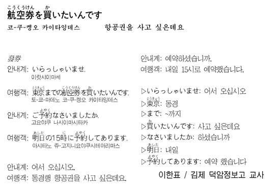 [회화 삼국지] 관광 일본어 - 항공권을 사고 싶은데요