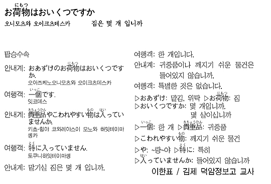 [회화 삼국지] 관광 일본어 - 짐은 몇 개 입니까