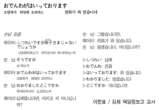 [회화 삼국지] 관광 일본어 - 전화가 와 있습니다