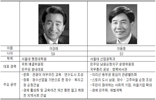 이강래 후보는 조직력으로 이에 맞서고 있다. 이미 남원·순창지역 시·도의원들의 지지선언을 얻어낸데 이어 지난해 10·26재보선때 가동됐던 조직이 탄탄해 내심 승리를 자신하고 있다. 상대후보가 지역내 일부 정서를 업고 세를 결집하고 있지만, 그동안 공들여 온 조직은 쉽사리 흔들리지 않을 것이란 분석이다.