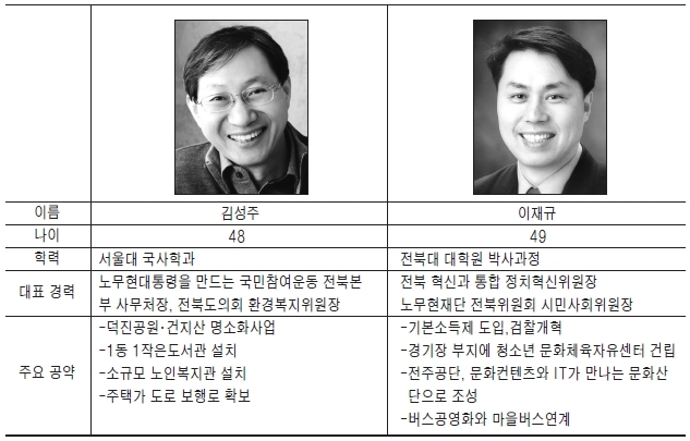 △지역연고가 약한데.(이재규)= 광주에서 20년 살고 30년을 전주에서 살았다. 30년 동안, 전주 전북지역의 대부분 이슈에 참여하고 목소리를 낸 가슴 뜨거운 '전북사람'이다. 1981년에 전북대학교에 진학한 이래 줄곧 덕진구에서 생활하며 활동했다. 태어난 곳만 전주인 사람, 서울 학벌을 먼저 내세우는 사람보다 전주 곳곳을 구석구석 더 잘 알고, 수많은 전주사람과 교분을 맺어왔다.