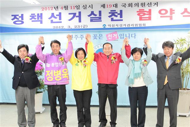 한편, 익산 갑·을 후보자 9명은 23일 저녁 6시 공약과 정책으로 승부하는 매니페스토 정책선거실천 서약서에 서명하고, 후보자비방이나 금품·향응제공 등 불법선거를 지양하고 정책대결 중심의 공정한 선거를 약속했다.