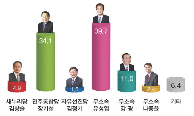 무소속 유성엽 현 의원에 민주통합당의 장기철 후보가 맹렬히 추격하는 양상이다.