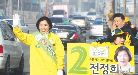 박 위원장의 이날 전주 방문은 정 후보측의 요청이 아니라 광주 서구을에 출마한 이정현 후보 지원 유세에 이어 상경하는 길에 잡힌 일정으로 전해졌다.