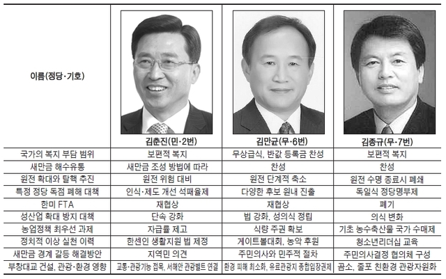 △김종규: 전북정치의 발전을 위해서도 특정 정당의 독점구조는 해소돼야 한다. 첫째, 독일식 정당명부제를 도입해 일정한 득표수준에 오른 정당이나 정치연대에 지방의회 진출권을 부여해야 한다. 둘째, 기초자치단체장과 기초의원에 대한 정당공천제를 폐지해 정당의 지배력을 배제해야 한다.