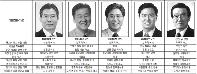 △김광삼 후보: 취약계층에게는 집중적으로, 국민 모두는 보편적 지원으로 인간다운 생활을 보장한다. 보편적 복지 재원은 재정건전성을 유지하면서 재정개혁, 복지개혁, 조세개혁 등 3대 개혁으로 조달하면 가능하다.