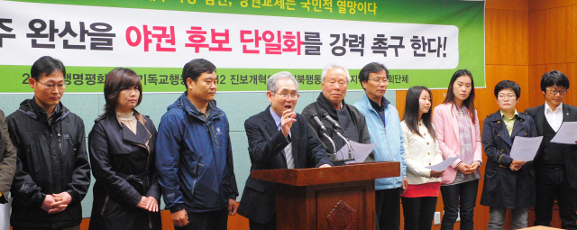 그는 "새누리당 후보의 어부지리를 막기 위해 진정성을 갖고 후보단일화와 관련한 방안들을 제시했으며, 지난 7일 KBS전주 토론회에서 민주당이 선호하고 본 후보에게 불리한 100%여론조사 방식까지 수용할 의사를 밝혔고, 이 후보도 이에 동의했다"면서 "그러나 8일 본 후보의 거듭된 요청에도 불구하고 이 후보 측은 끝내 실무협상대표를 보내지 않아 단일화가 사실상 무산된 것"이라고 밝혔다.