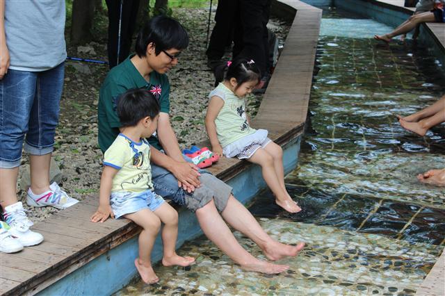유황 족욕탕은 달걀 썩은 냄새가 난다는 소리를 듣고 정말일까 했는데, 실상은 그렇지 않았다. 졸졸졸 쉼 없이 깨끗한 물이 흐르고 있었다. 하지만 음용수로는 적합하지 않다고 하니 깨끗하다는 생각에 무심코 마시지 않길 바란다. 어디까지나 발을 위한 족욕탕이니까. 온가족이 족욕을 즐기고 있는 모습이 편안하고 즐거워보인다. 이 곳 나무들은 주렁주렁 특이한 것을 달고 있었다. 그 팻말에는 나무에 대한 간단한 설명이 적혀 있어 숲과 나무를 배울 수 있다. 상관 편백나무 숲에서는 피톤치드를 내뿜는 편백나무와 족욕탕 외에도 매실따기 체험, 숲 체험 등 다양한 체험학습이 마련되어 있다.