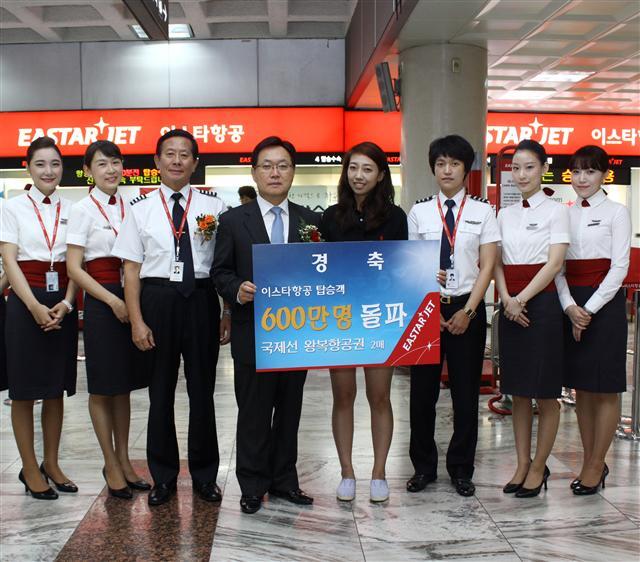 이스타항공은 21일 오전 김포공항에서 이스타항공 박수전 대표이사 및 운항승무원이 참석한 가운데 600만번째 탑승고객과 함께 축하 행사를 진행했다.