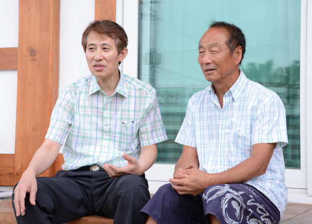 | ▲ 박문기 선생과 조상진 선임기자가 평상에 앉아 담소를 나누고 있다. 안봉주기자 bjahn@ | ||