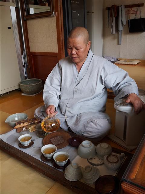 다시 차를 타고 도착한 곳은 완주군 소양면 대흥리 21번지에 위치한 위봉사다. 세 마리의 봉황새가 절이 생긴 터를 감싸고 하여 '위봉사'라고 이름 붙은 이곳은 들어서면 조용한 산세와 그 장엄한 분위기에 압도당한다. 현재 보수공사 중인 대웅전인 보광명전 대신 봉서루를 찾았다. 불교가 아닌 사람도, 절에 들어오면 일단 먼저 봉서루에 들어가 절을 하는 것이 좋다. 이는 부처님에게 예를 갖추는 것과 종교적인 목적 외에 절을 하는 동안 잡념을 지우고 마음을 한 번 덜어낸다는 의미에서다.