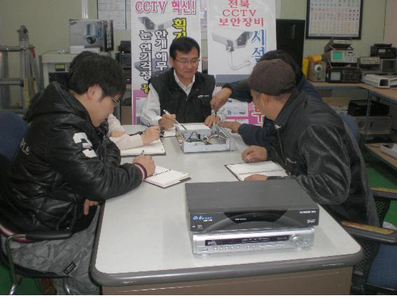 ▲ (주)라인인포 서암석 대표가 직원들을 대상으로 보안기기 제품의 내부 특성을 설명하고 있다.
