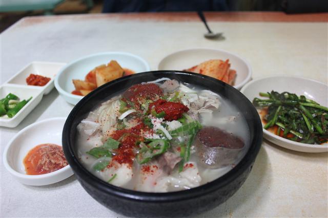 뽀얀 국물에 순대와 함께 있는 국수자락. 불에 데워 뜨겁게 먹는 순대국밥과 달리 국수에 뜨거운 국물을 부었다 따랐다 해서 데워먹는 토렴식 순대국수다. 뜨뜻한 순대국밥에 익숙한 분들이라면 살짝 미지근한 순대국수가 익숙하지 않을 것이다. 음식이 나오자마자 숟가락을 들이미어도 혀가 데이지 않으니 뜨거운 음식을 못 드시는 분들에게 강력 추천한다. 순대국수 역시 국밥처럼 고기와 순대가 푸짐하게 들어있다. 가격도 저렴해 여행을 다니는 '내일러'들에게 강력 추천한다. 기차 타고 전북으로! '내일로' 타고 식도락 여행을 즐겨보자!