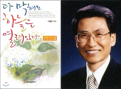 김 목사가 눈물 겨운 신앙고백서'다 막혀도 하늘은 열려 있다'(쿰란출판사)는 "신을 왜 믿어야 하는가"를 보여주는 것에 가깝다. 계속되는 불운을 경험하며 신의 존재에 대한 근원적인 질문을 던지던 그에게 도돌이표처럼 되돌아온 대답은 하나님 시계에 맞춰 살라는 것. 이는 목회를 하면서 삶의 애환을 웃음으로 승화시킨 간증을 담은 글 모음집이다.