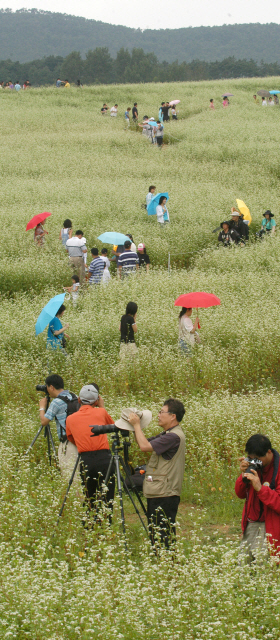 보리밭에 관광객이 몰려들며 경관농업의 발전가능성이 나타나면서 관광수요에 맞춰 관광성수기를 늘리는데 주목했다. 이에 콩을 메밀로 작물전환해 보리와 메밀이 계절별로 다르게 창출되는 경관을 조성했다. 2003년 메밀을 13만2200㎡ 파종하면서 그해부터 관광객이 몰려들었다. 2004년부터는 봄에는 청보리밭축제, 가을에는 메밀꽃 잔치가 열리고 있으며, 지난해 각각 10회째를 맞았다. 2006년부터는 보리수확이 완료되는 6월초와 메밀이 파종되는 7월말~8월 중순 사이에 해바라기를 식재해 호평을 받고 있다. 청보리밭-해바라기밭-메밀밭으로 이어지는 선순환을 통해 경관농업단지로서 시너지 효과를 낳게 됐다.