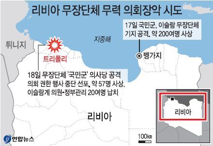 리비아 퇴역장성 칼리파 하프타르가 이끄는 무장단체 ‘국민군’이 수도 트리폴리 의사당을 공격하고 의회의 권한 행사 중단을 선포했다.