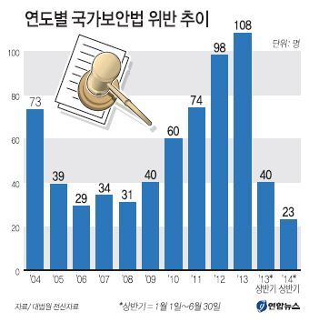 국보법 위반 사건이 2004년 이후 가장 많아 ‘공안정국’을 연상시킨 작년과 대조적이다. 올해 초 국가정보원 증거조작 의혹이 불거진 뒤 수사기관의 공안 기능이 일시 마비된 결과라는 관측이 나온다.