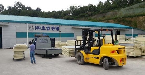 (주)호암엔지니어링의 1일 생산량은 500~600㎡에 달하는데 전국 1위규모의 업체가 1일 1000㎡를 생산하는 것을 보면 단기간에 도약했다는 것을 알 수 있다.