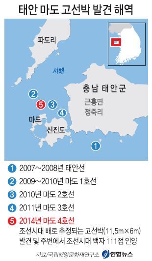 이 선박 내부에서는 조선 초기 분청사기 2점이 발견됐다. 따라서 추후 자세한 조사와 분석이 있어야겠지만 한국 수중고고학사상 최초의 조선시대 선박 실물 출현으로 기록될 전망이다. 뉴스