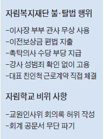재단 산하에 있는 자림학교에서도 비위 사항이 속출했다.