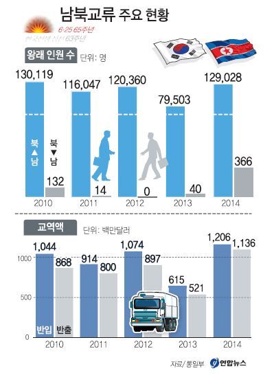 오는 25일이면 '동족상잔의 비극' 6·25 전쟁이 발발한지 65년이 된다. 2000년 6월15일 첫 남북정상회담에서 채택된 6·15 공동선언 이후 각종 교류·협력 사업이 활발히 진행됐으나 북한의 크고 작은 도발로 남북간 교류와 협력은 크게 후퇴했다. 연합뉴스