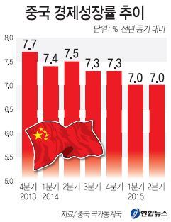 중국 국가통계국은 15일 기자회견을 열어 2015년 상반기 국내총생산(GDP)이 29조 6868억 위안으로 작년 동기보다 7.0% 증가했다고 발표했다.