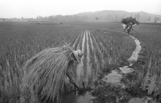 ▲ 1977년 7월 30일 가뭄끝에 단비가 내리자 농부들이 논 물꼬를 정비하고있다. 전북일보 자료사진