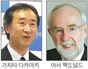 스웨덴 왕립과학원 노벨위원회는 6일(현지시간) 일본 도쿄대 교수인 가지타 다카아키(56)와 캐나다 퀸스대학 명예교수 아서 맥도널드(72)가 공동으로 노벨물리학상 수상자로 선정됐다고 발표했다.