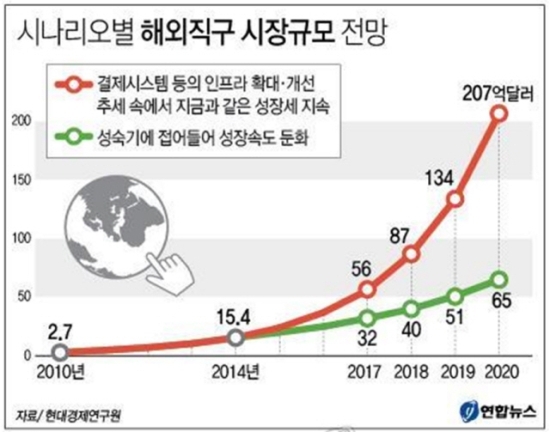 온라인을 통한 해외직구(직접구매) 시장이 매년급성장하면서 2020년에는 연간 거래 규모가 200억달러를 돌파할 것이라는 분석이 나왔다.