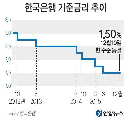 이로써 기준금리는 작년 8월과 10월, 올 3월과 6월에 각 0.25%포인트씩 총 1%포인트가 인하되고서 6개월째 연 1.5% 수준에 머물게 됐다.